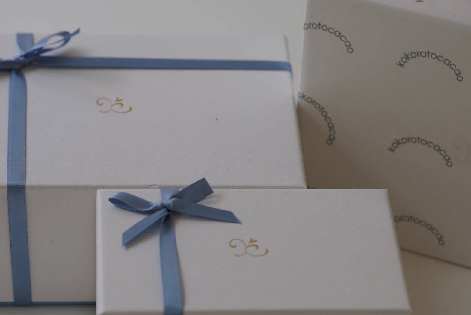 種類ごとに包装 kokorotocacao オリジナルボックスに詰め合わせ